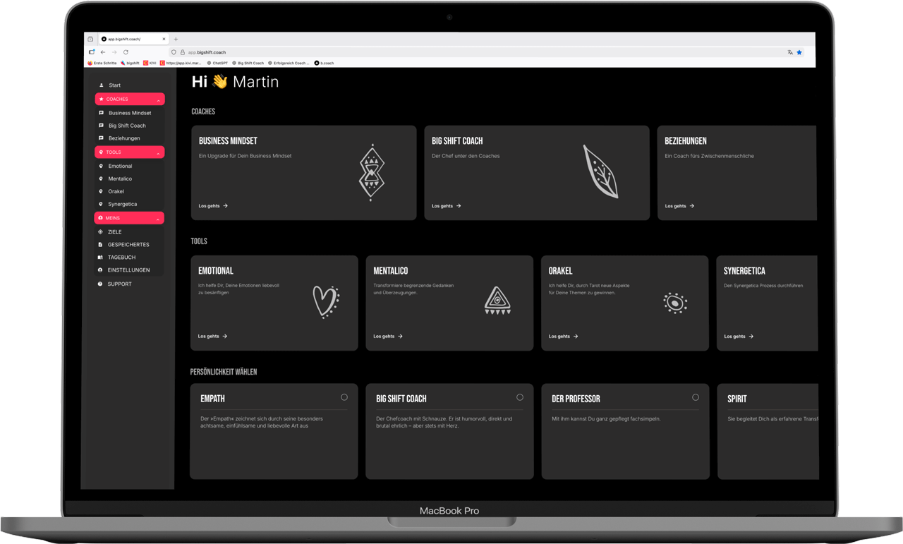 - Der Big Shift KI Coach: 3 KI Coaches für Dich persönlich, Deine Beziehungen und Dein Business.