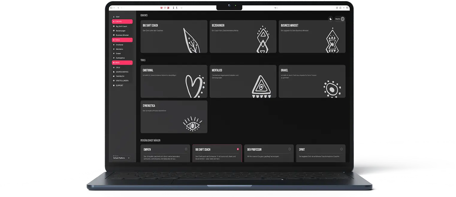 Der Big Shift KI Coach filtert das Wesentliche heraus und führt dich Schritt für Schritt zu deiner inneren Klarheit.