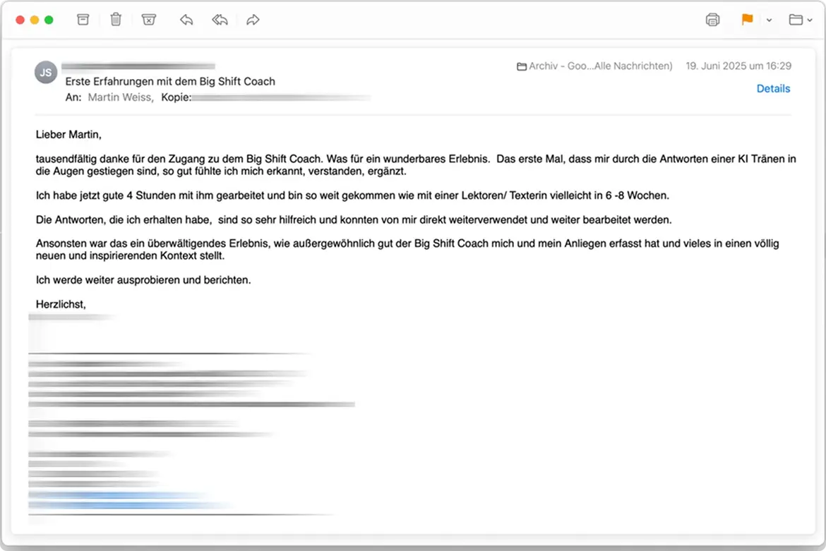 Der Big Shift KI Coach spricht aus, was andere sich nicht trauen – und bleibt dabei immer wertschätzend.